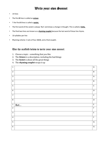 New How To Write A Sonnet Worksheet Teacher Made Resource